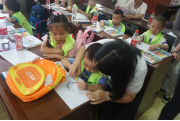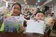 課堂中,小朋友們獲得了不少關(guān)于橋梁建筑的小知識(shí),利用捐贈(zèng)的文具畫(huà)出他們心目中的大橋。