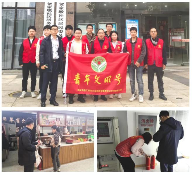 在集中學(xué)習(xí)實踐活動后,綜合院青年員工又主動到賀家墩社區(qū)開展消防宣傳志愿服務(wù)活動。在社區(qū)領(lǐng)導(dǎo)下,宣傳了老舊電器電路斷路、電動車違規(guī)充電、充電器、燃?xì)庠畹蕊L(fēng)險隱患,滅火器的使用和火災(zāi)逃生等知識,檢查了消防設(shè)施,排查了安全隱患。