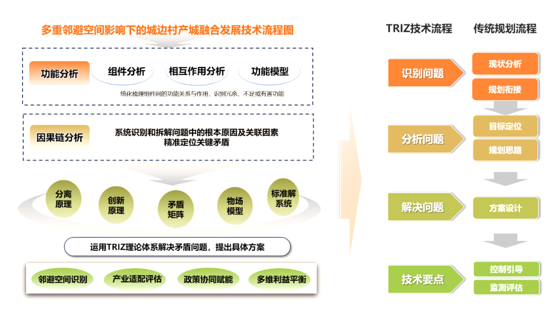 “基于TRIZ創(chuàng)新理論的一種多重鄰避空間影響下的城邊村產(chǎn)城融合發(fā)展規(guī)劃技術”項目基于寧波北侖新碶街道村莊規(guī)劃編制實踐,對城邊村產(chǎn)城融合發(fā)展的深層矛盾進行科學拆解,精準識別出“空間排他、物理割裂、功能受限、發(fā)展制約”四大關鍵矛盾。項目提出的“化鄰避為鄰利”技術方案,有效應對土地供需不平衡、資源保護利用不協(xié)調等問題,提出“破解約束、產(chǎn)業(yè)升級、植入IP”的產(chǎn)業(yè)發(fā)展路徑,成功解決多重鄰避空間制約下的規(guī)劃發(fā)展難題,為新碶街道量身擘畫了“碶彩稻田”鄉(xiāng)村振興推進示范區(qū)和“稻田+”都市田園鄉(xiāng)村示范區(qū)的規(guī)劃藍圖。