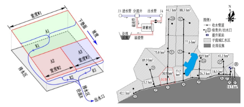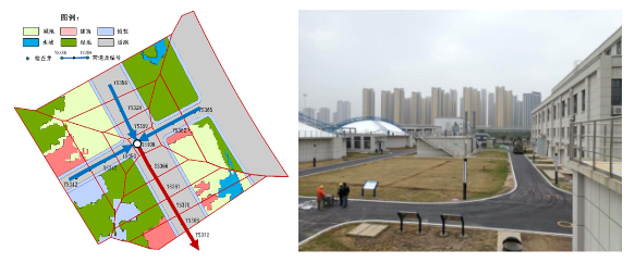 下墊面產(chǎn)流示意圖(左)和黃家湖污水廠應用效果圖(右)