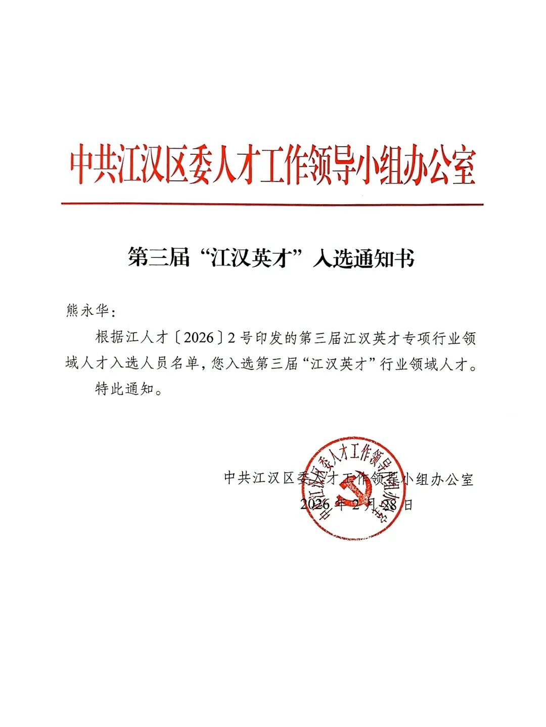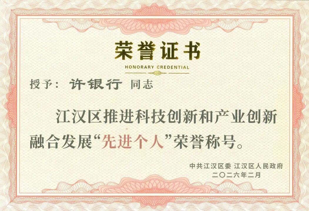 許銀行同志榮獲江漢區(qū)推進科技創(chuàng)新和產(chǎn)業(yè)創(chuàng)新融合發(fā)展先進個人