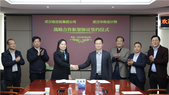 2021年4月10日,武漢市政設(shè)計(jì)院與武漢臨空經(jīng)濟(jì)區(qū)建設(shè)投資開(kāi)發(fā)集團(tuán)有限公司在漢簽署戰(zhàn)略合作協(xié)議,雙方將依托各自的技術(shù)、資源等優(yōu)勢(shì),在臨空經(jīng)濟(jì)區(qū)內(nèi)的市政項(xiàng)目整體策劃研究、環(huán)境治理等方面開(kāi)展深度合作。武漢市政設(shè)計(jì)院董事長(zhǎng)武興治、總經(jīng)理姚華、紀(jì)委書(shū)記談逢陽(yáng)、副總經(jīng)理陳建斌,武漢臨空投集團(tuán)公司黨委書(shū)記、總經(jīng)理黃峰,副總經(jīng)理朱年正,副總工程師王瑩,以及雙方相關(guān)人員出席簽約儀式。