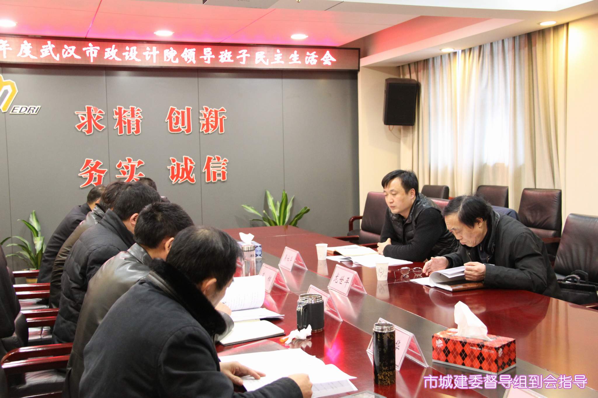 ??? 按照市城建委的安排和部署,2月5日下午,公司領(lǐng)導(dǎo)班子召開(kāi)2014年度民主生活會(huì),市城建委督導(dǎo)組組長(zhǎng)、總工程師龍世平和督導(dǎo)組成員吳社華出席并指導(dǎo)了會(huì)議,黨委書(shū)記蔡輝主持會(huì)議,并代表公司黨委作對(duì)照檢查并作總結(jié)講話(huà),公司領(lǐng)導(dǎo)班子成員逐一作對(duì)照檢查,開(kāi)展批評(píng)與自我批評(píng)。